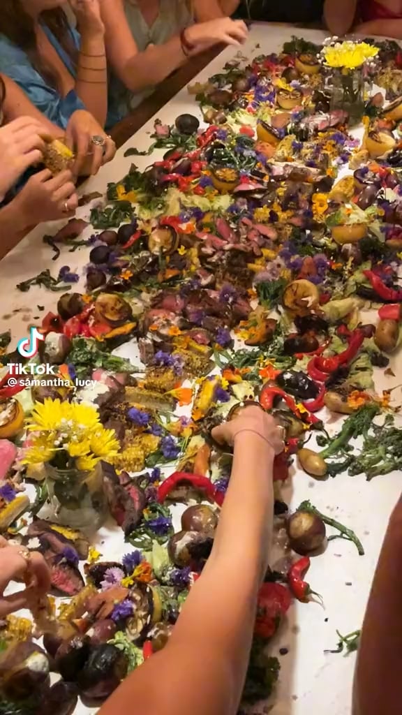 Looks like someone has emptied a restaurant dumpster on the table and they’re scavenging for scraps of food.