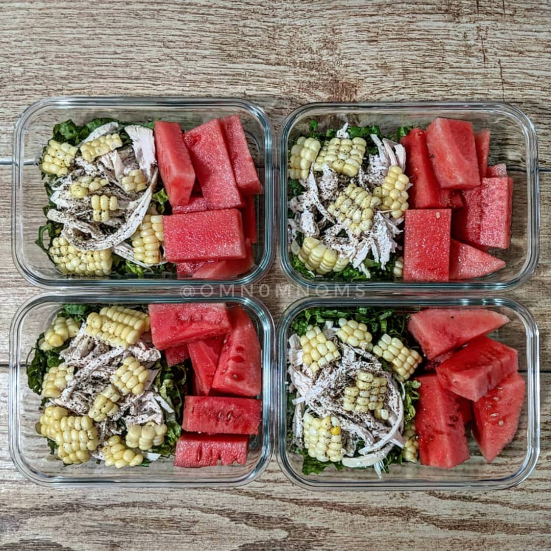 Meal Prep Sunday: Shredded Chicken & Corn Salad + Sliced Watermelon 🍴😋