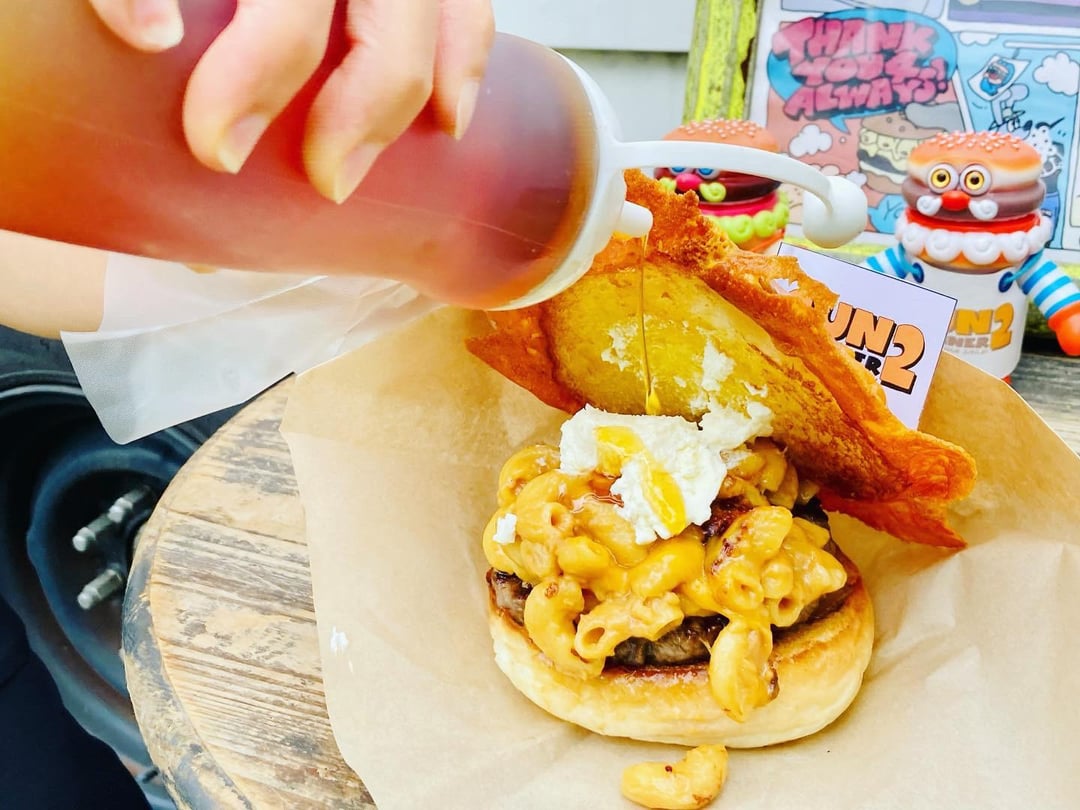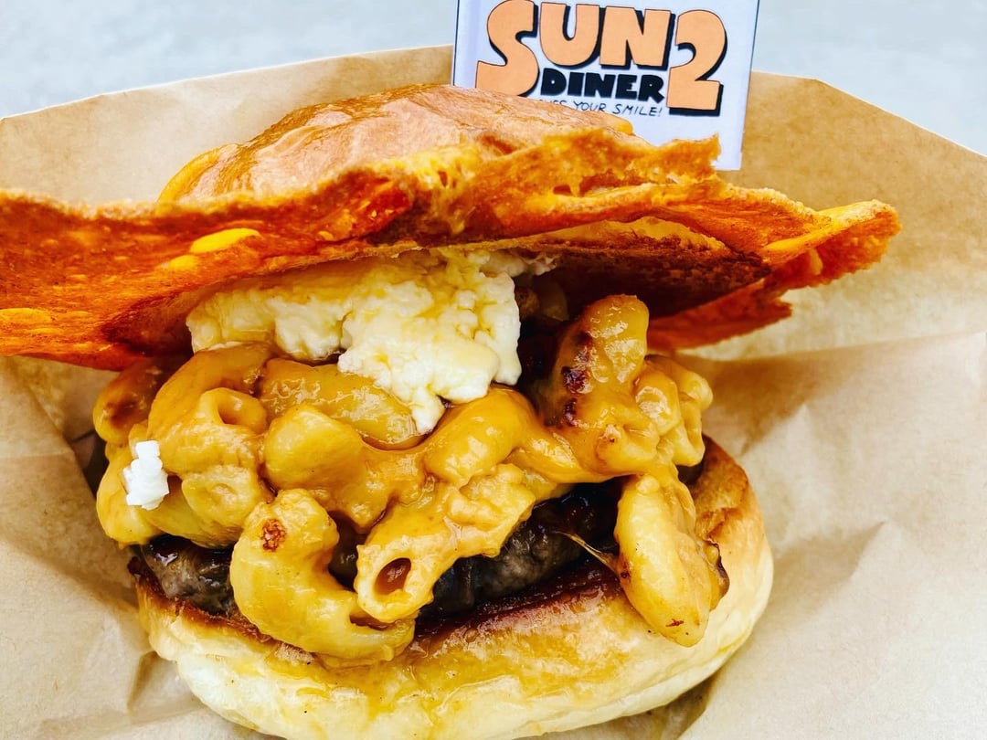Sun 2 Diner Smokey Maple Caramel Macaroni Cheese Burger!Do I need words for this burger!? Nah… This monsterostiy can speak for itself. by soulofjapan Write A CommentYou must be logged in to post a comment.