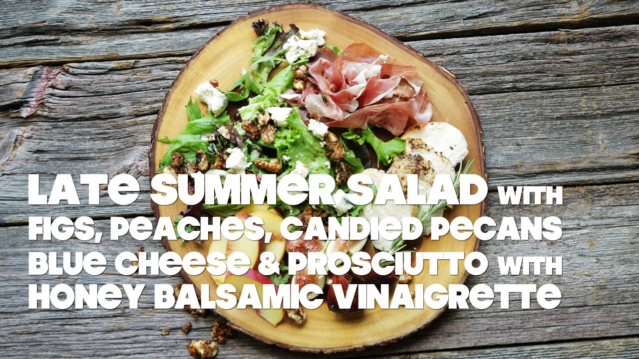 Looking for a delicious summer salad? Try this Fig and Peach Salad with Prosciutto and Balsamic Vinaigrette, served alongside roasted rosemary chicken, candied pecans, spring mix lettuce and blue cheese. Get the recipe at http://www.billyparisi.com/summer-salad-recipe-with-figs-peaches-and-prosciutto/