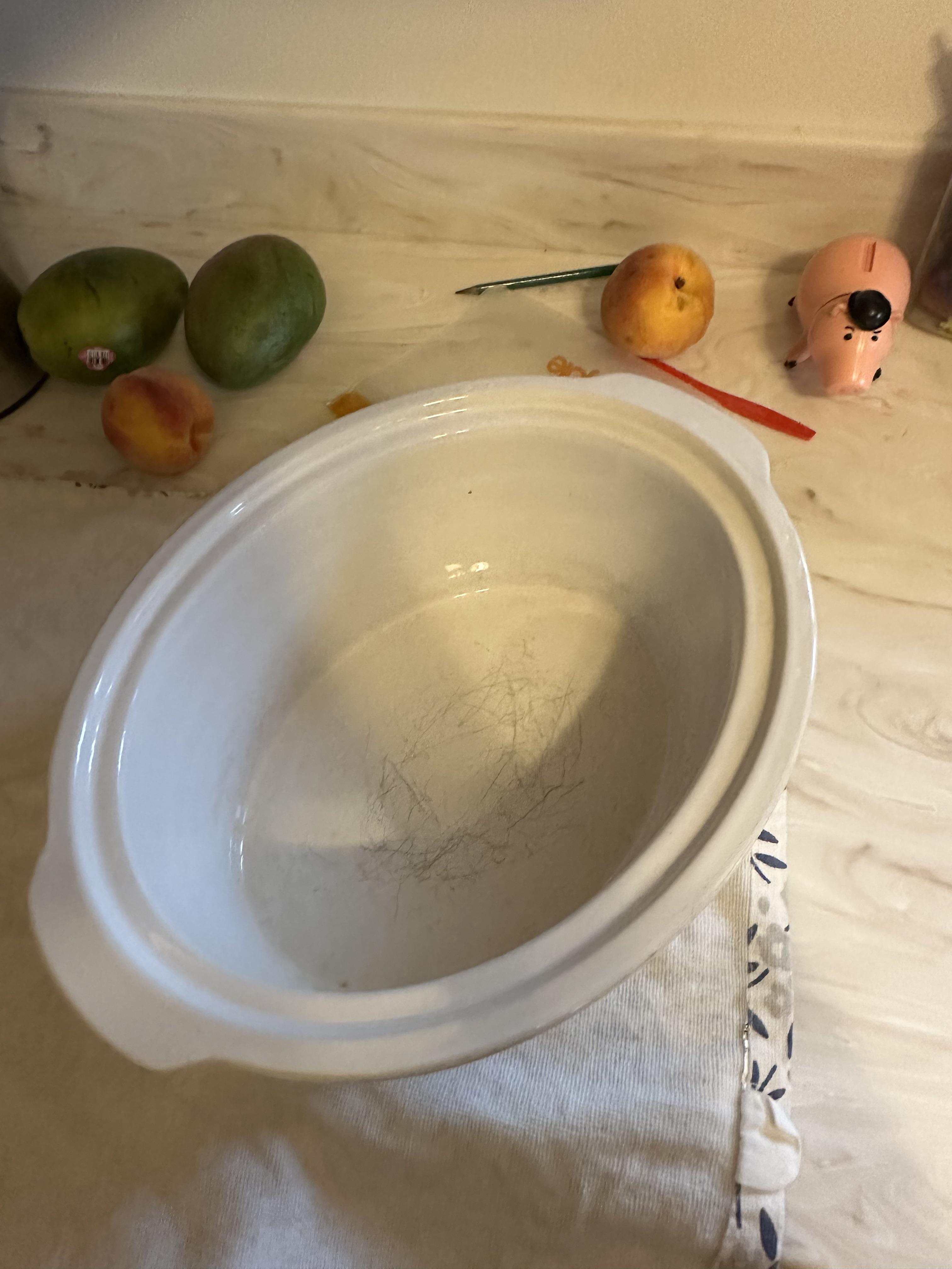 9. Try scrubbing it off with Barkeeper’s Friend first (I used to have white plates and that stuff took off “scratches” I was sure were there but disappeared after cleaning, it’s also MAGICAL for cleaning the Instant Pot stainless steel insert), but a new crockpot isn’t terribly expensive and the return on investment in this one has more than paid for itself if it’s several years old and she uses it often!