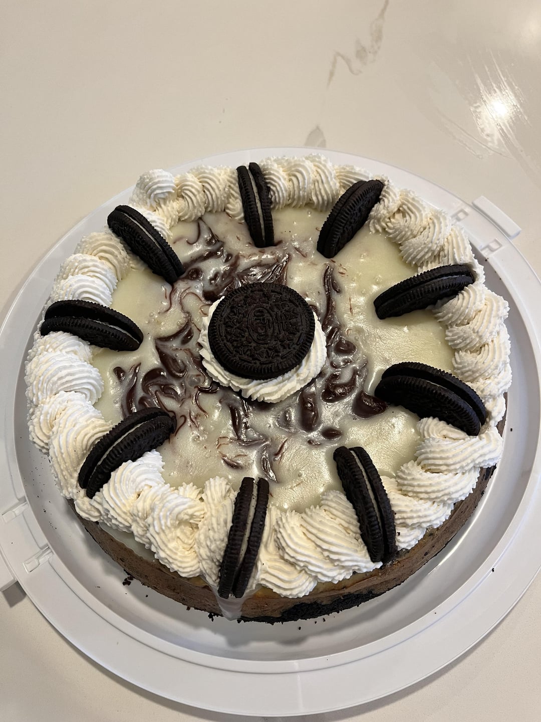 Used recipe from [Preppy Kitchen](https://preppykitchen.com/oreo-cheesecake/?utm_source=pinterest&utm_medium=social&utm_campaign=social-pug) and was super nervous as this was made for my boyfriend’s sister’s birthday. Luckily the ganache covered the cracks and although my piping is far from perfect, it was totally delicious so I can’t complain too much.
