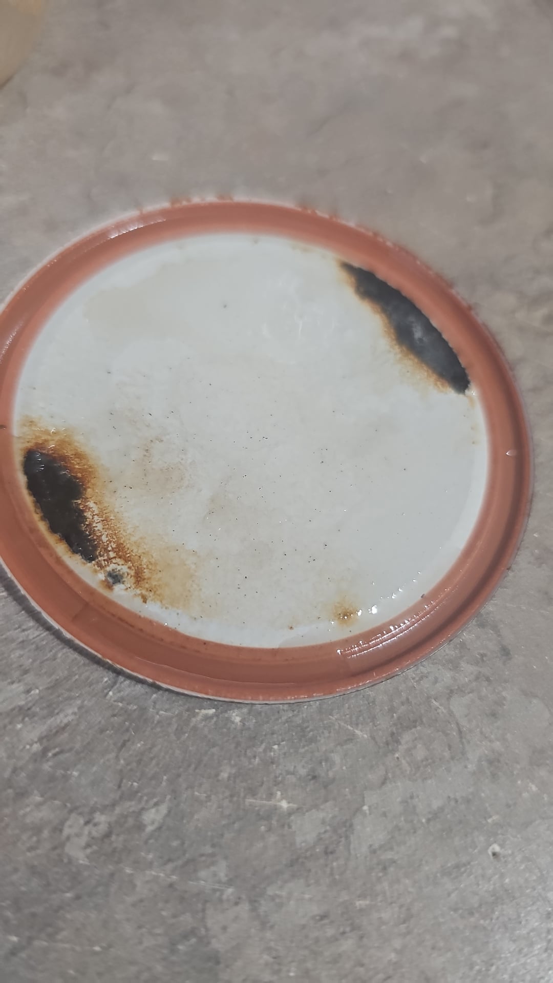 Could it be rust or something degrading the metal? Either way, I wouldn’t eat them.