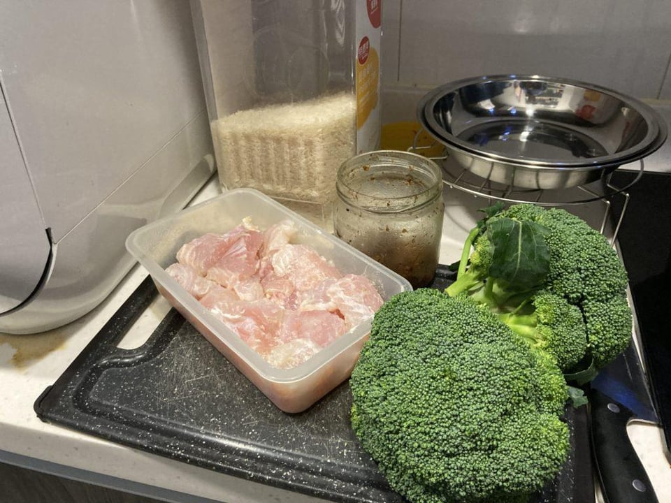 5. With a few minutes left on the rice cooker’s timer, place the broccoli into the rice cooker as well.