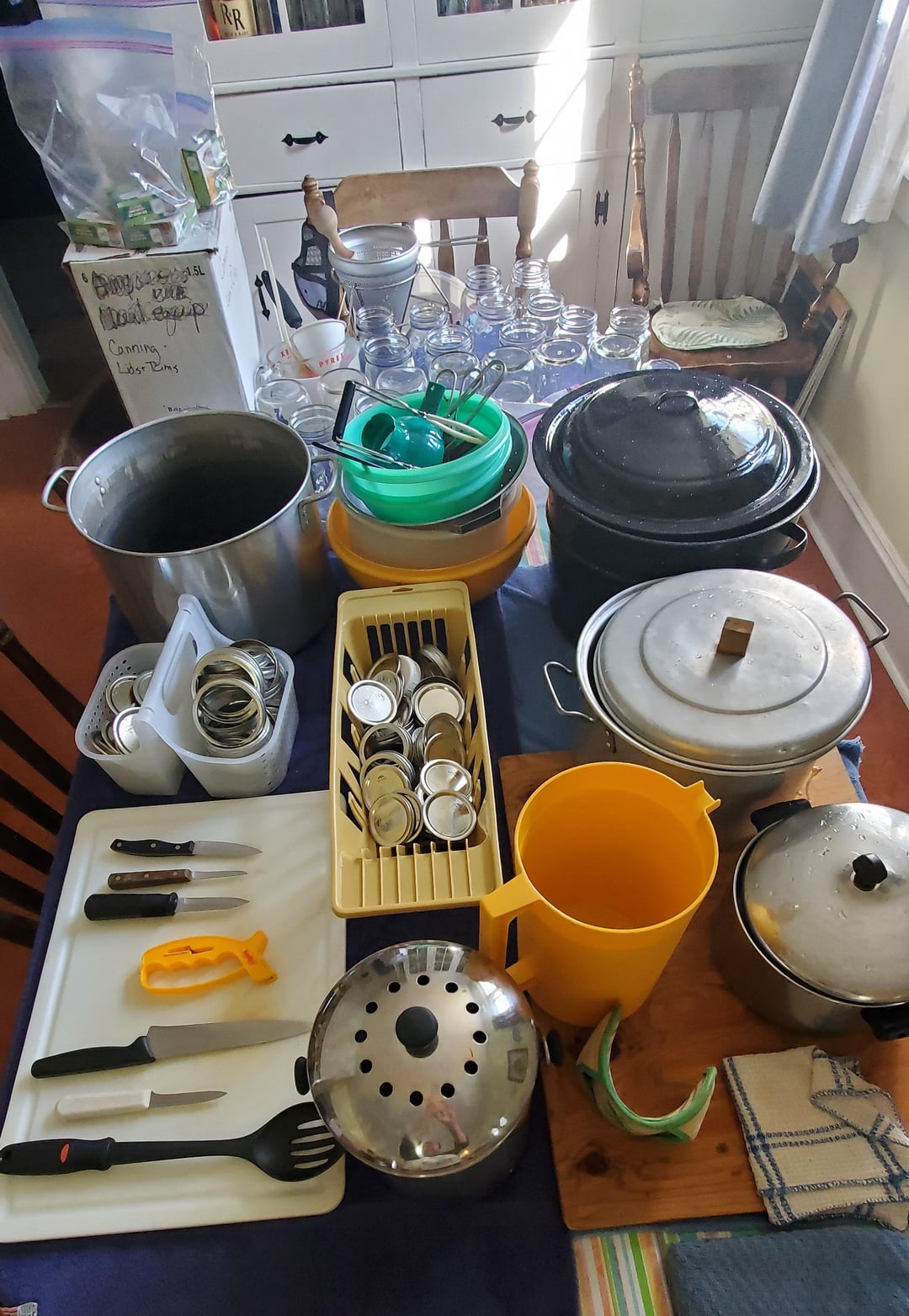 I thought new canners would enjoy checking out my pile of stuff. LOL Pots, big pots, you can never have too many!