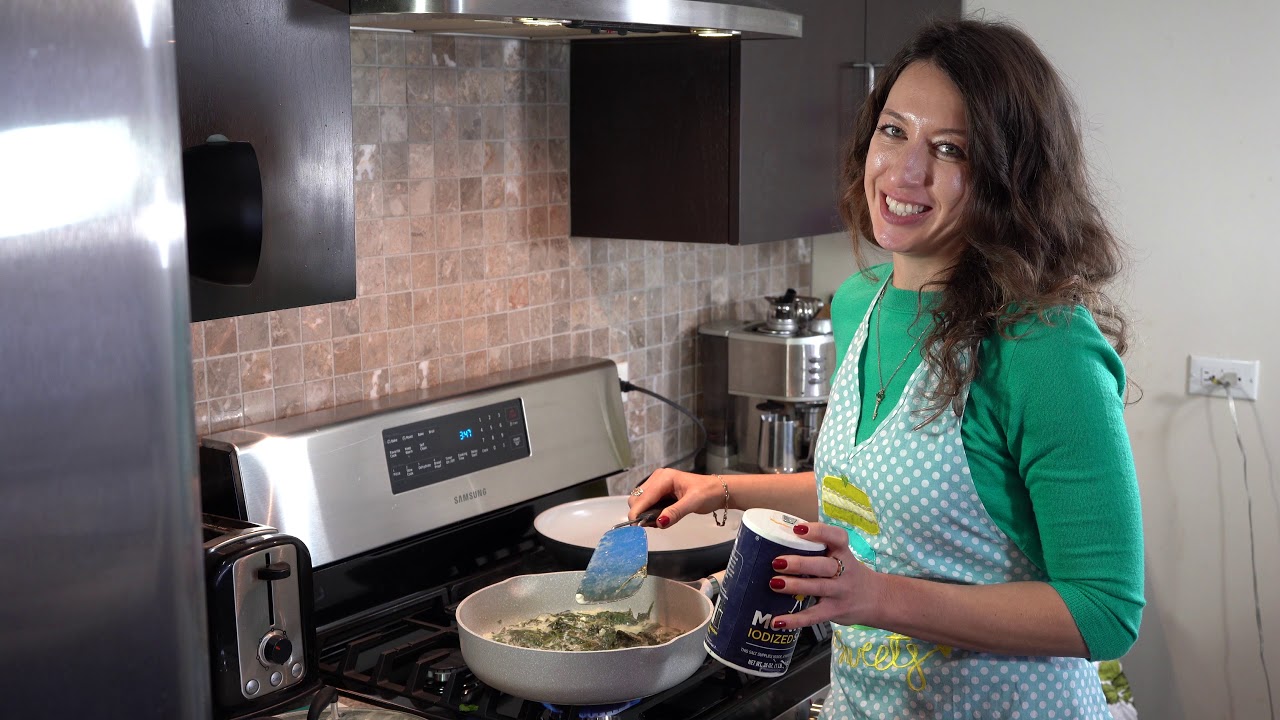 Spoon spinach mixture into chicken breasts.