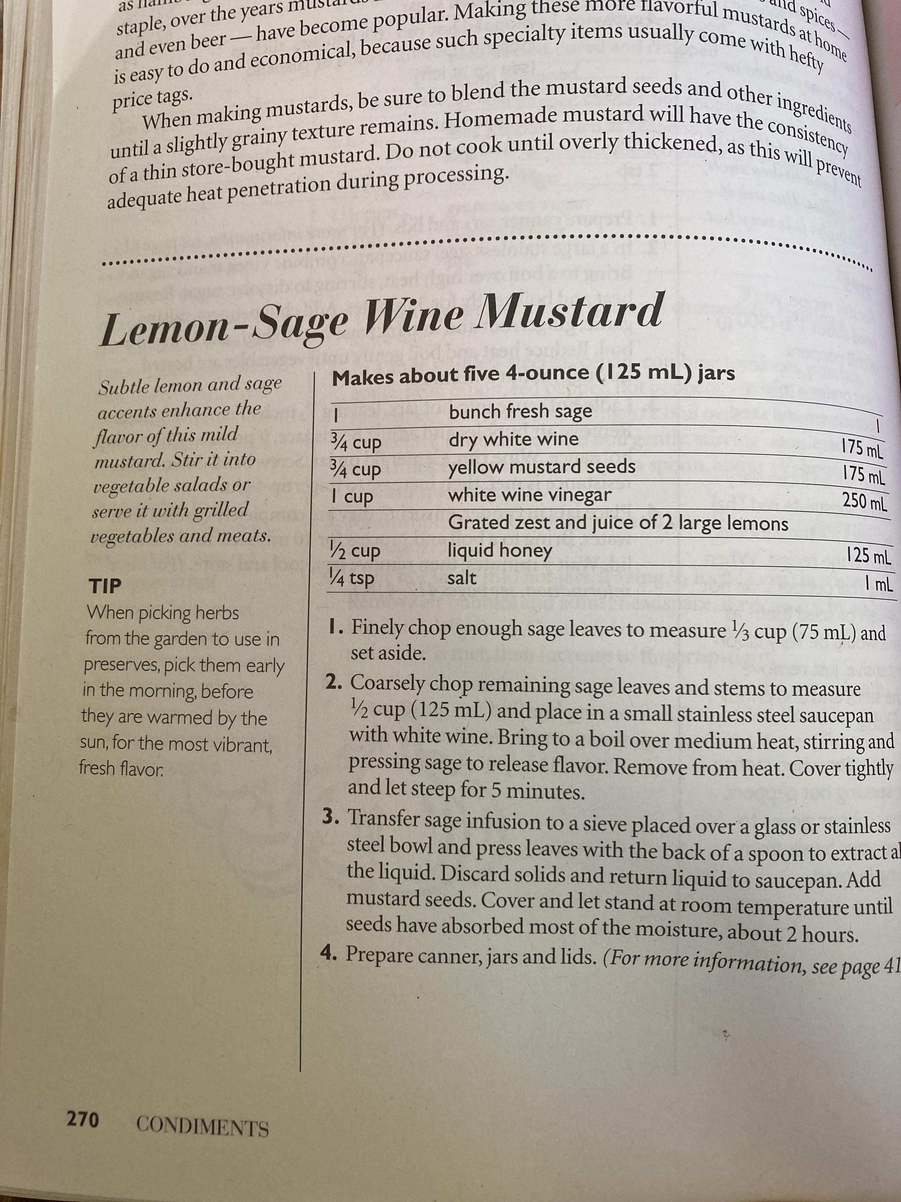 That sounds like a tasty mustard! Would you post the rest of the recipe please? I have the Bernardin books but those do not have mustard recipes in it.