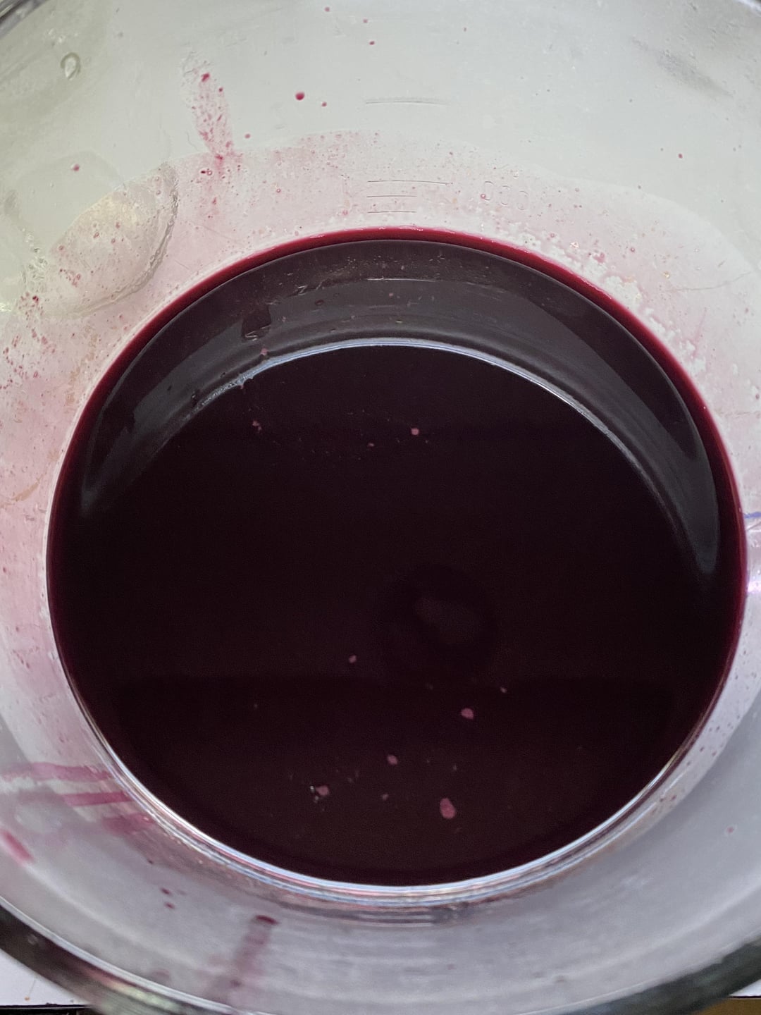 Start with 6 quarts of fresh or frozen elderberries. Cook berries to boiling, and reduce to a simmer for 15 minutes until all berries burst, releasing their juices. Use a jelly bag, cheese cloth, or fine mesh strainer to separate juice from pulp and seeds.