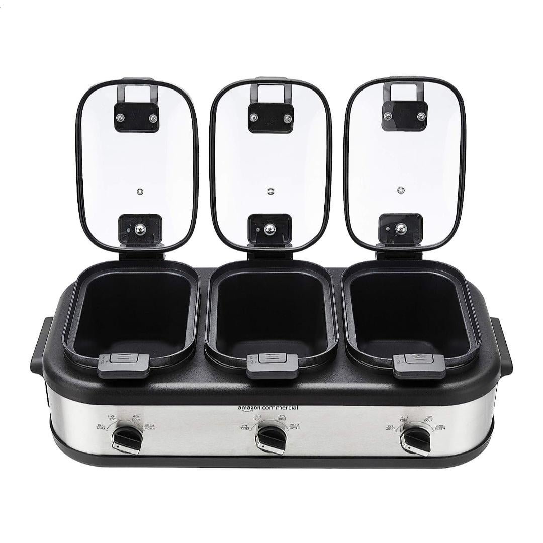 I have a triple but not the Amazon one. It’s really great for party dips but I haven’t been able to entertain like I want to so it has been sitting in a high cabinet for a long time. It worked great for a queso and nacho bar with one that had queso, one with fajita veggies, one with refries beans.