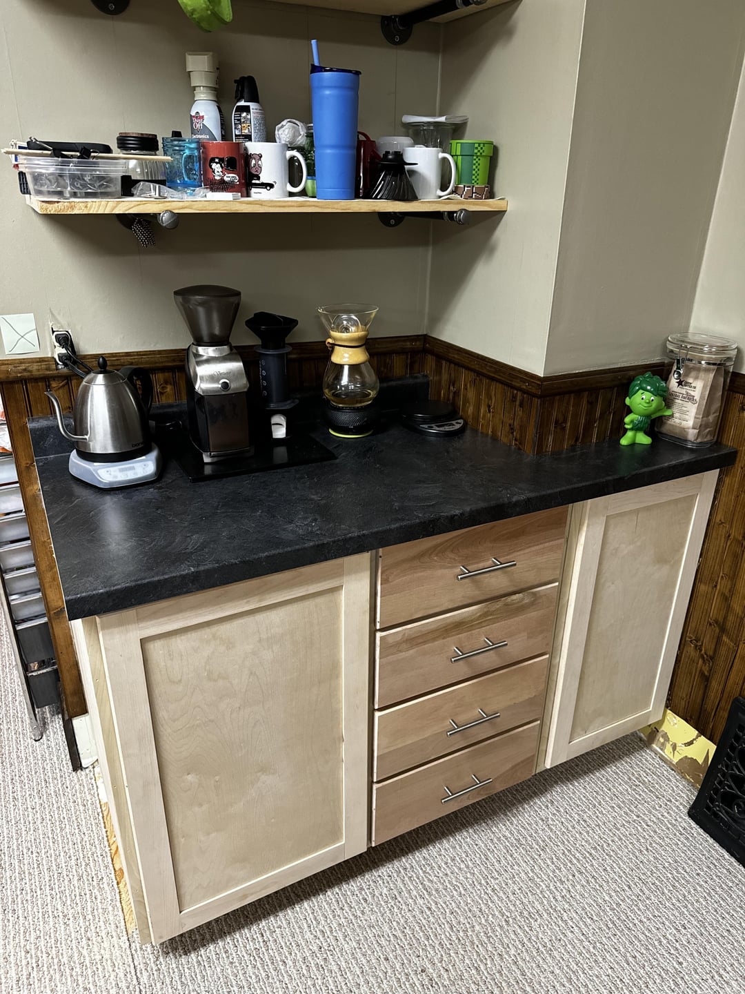 I spent most of the summer planning and building and this morning, I got to use my new coffee station