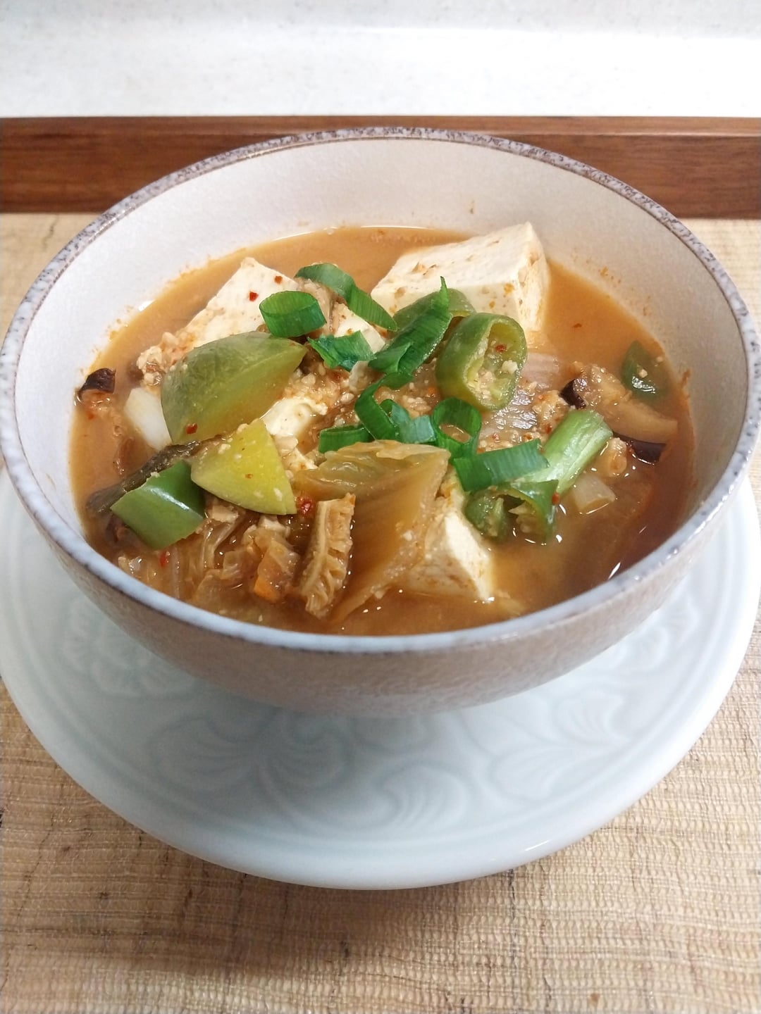 So there are two ways to make it, one being the “standard” way with pork, aged kimchi and all the good stuff & the other way being a milder version flavored with just tofu, zucchini, and saeujeot (it’s apparently how they’re served in certain restaurants). I only enjoy the former.