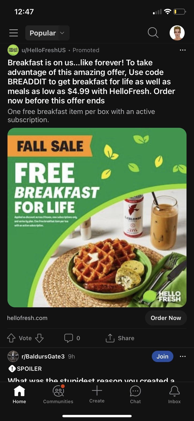 I’m an existing HF subscriber. Clicking the link just brought me to my HF app landing page. I tried adding a marketplace breakfast item to a future order but didn’t see a way to enter the promo code. Is this offer for new subscribers only?