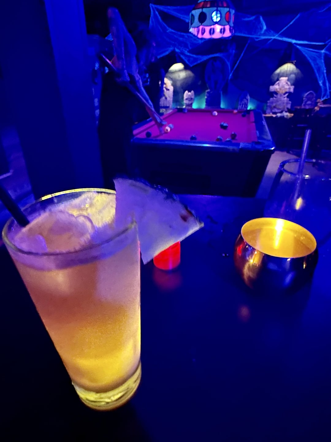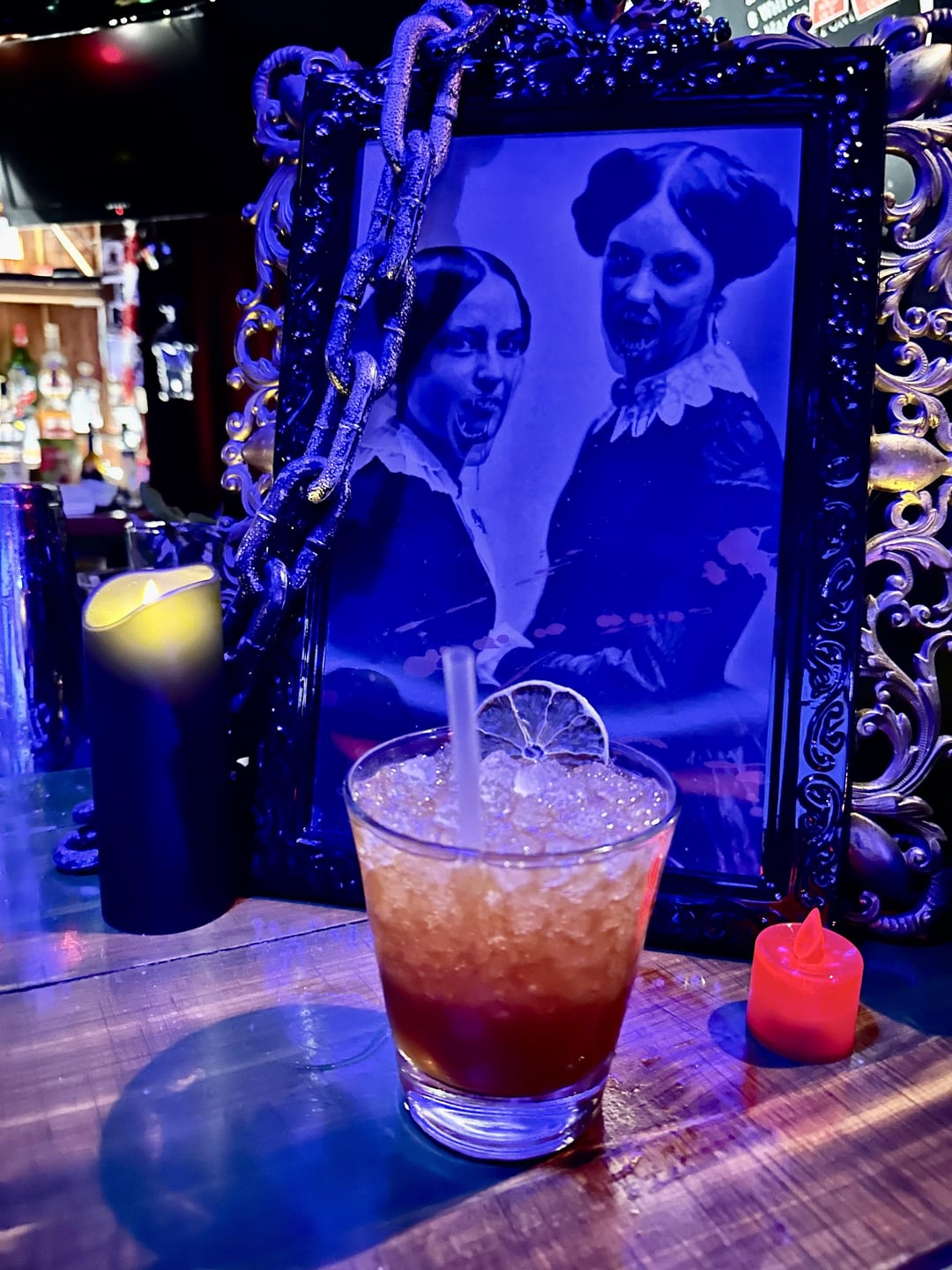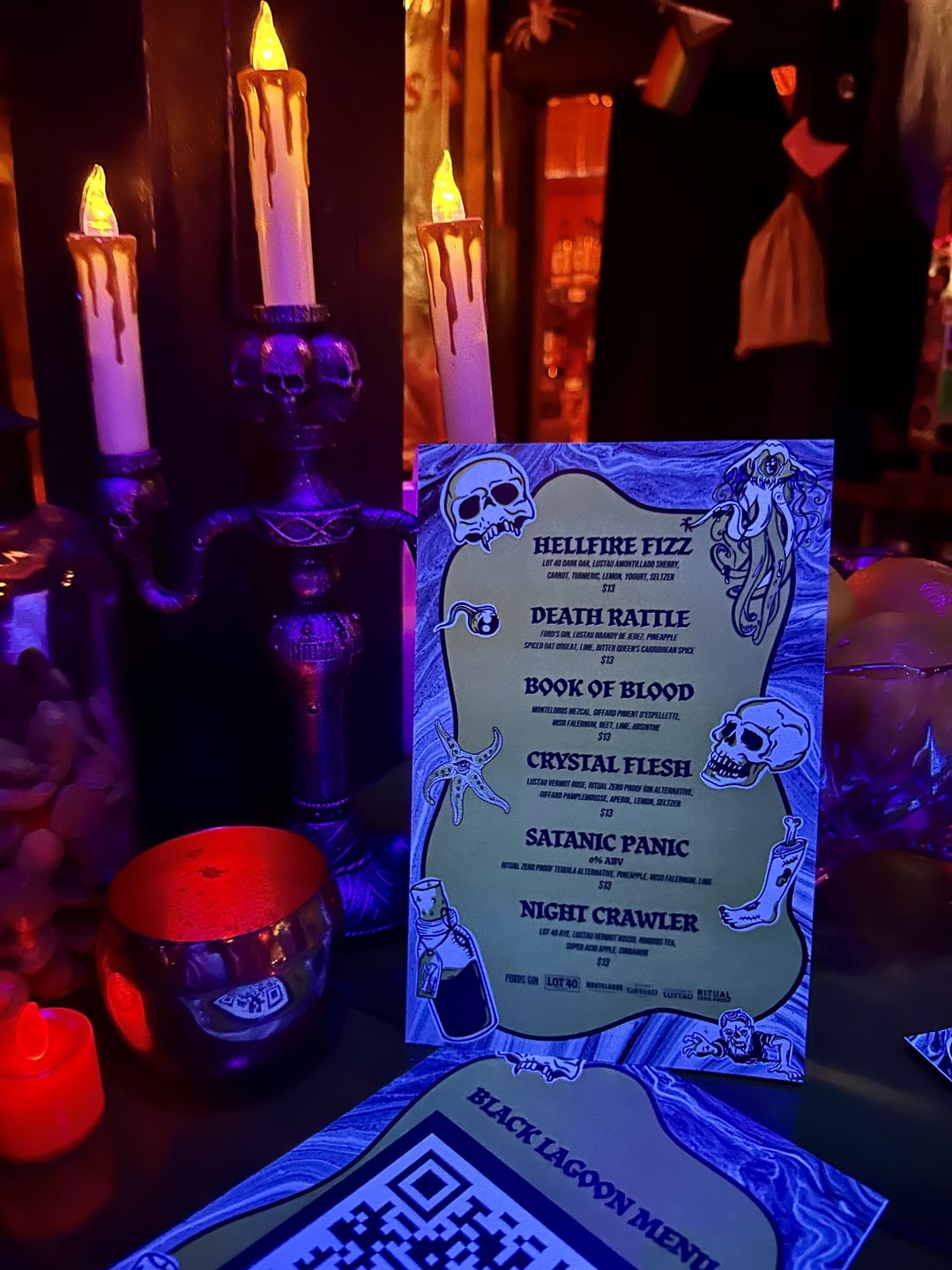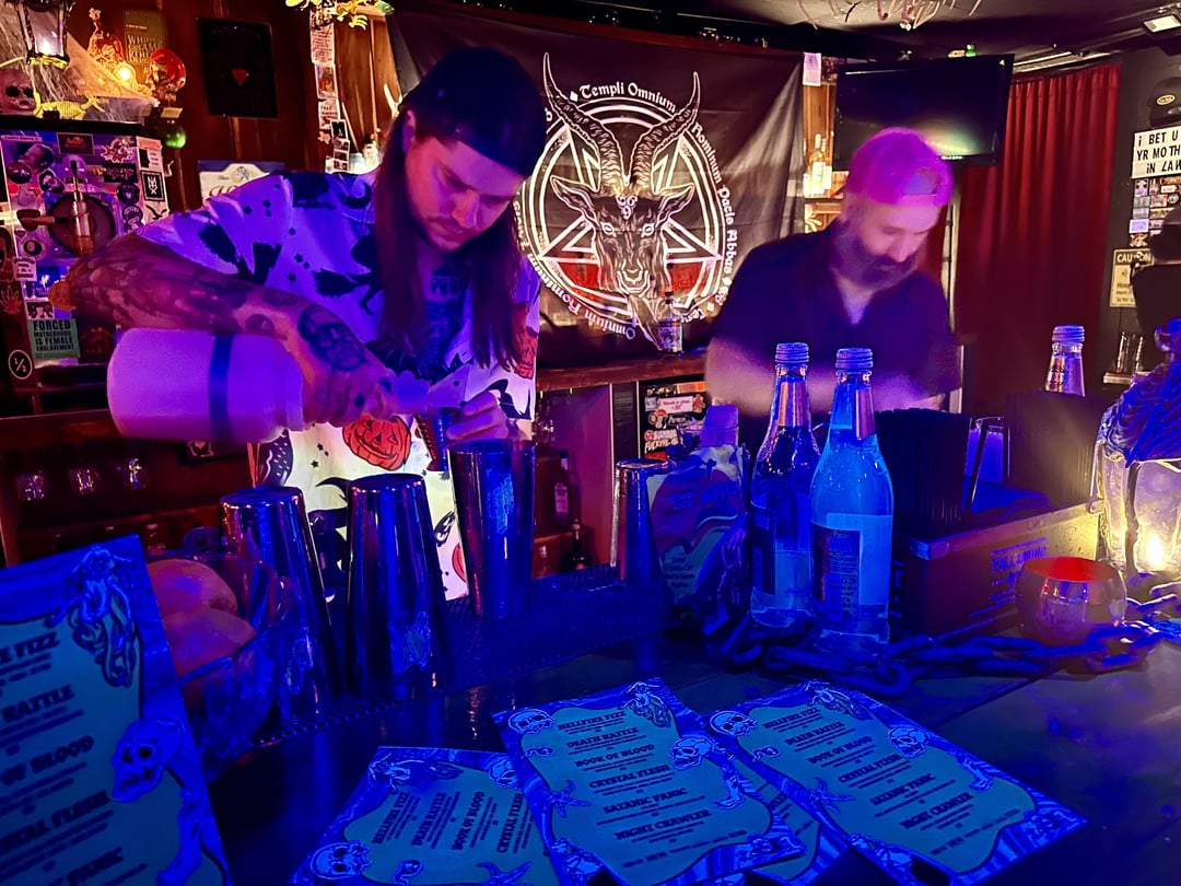 For those asking about Halloween bars, hereβs what I saw at King Bee on East 12th Street. For the rest of the month itβs costumed as Black Lagoon. Playlist had a lot goth/metal/rock songs like AC/DC, Type O Negative, Danzig hits. Cocktails are pretty good and they serve a non-alcoholic version on the menu.