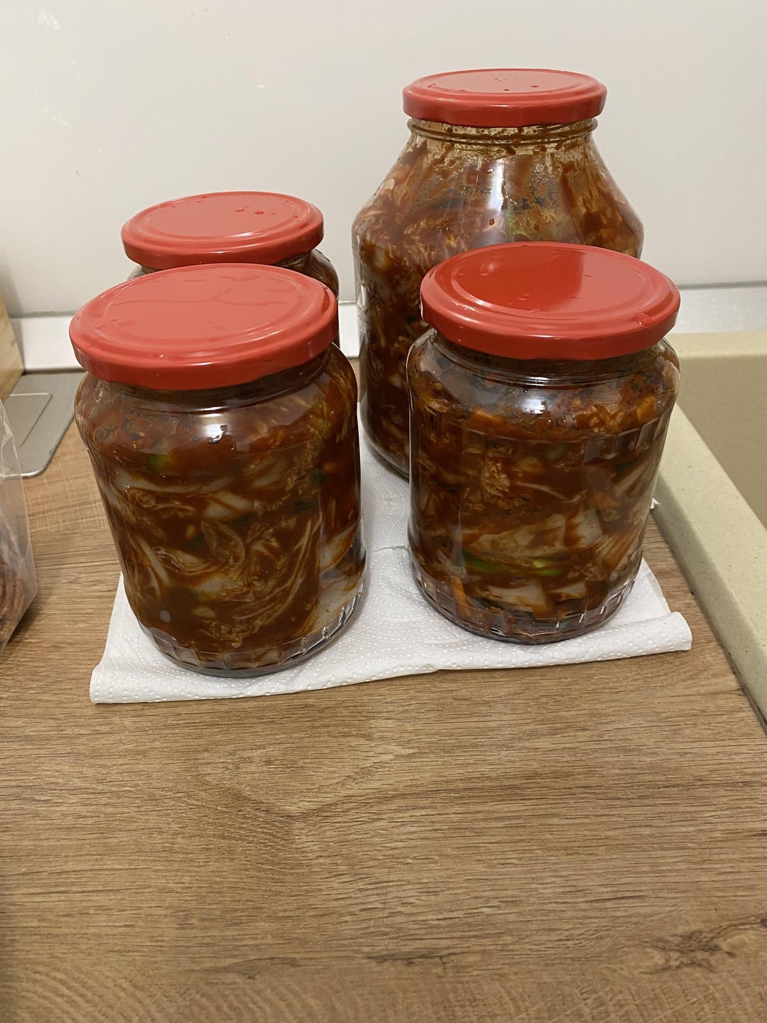 I used soy sauce instead of fish sauce because my family doesn’t eat meat or anything like that and so they barely tried it because the store bought ones always have fish sauce. I also had some of the kimchi paste left so i put in the freezer to use for next time. Now I have to wait a week-2 and then I will tell you the results