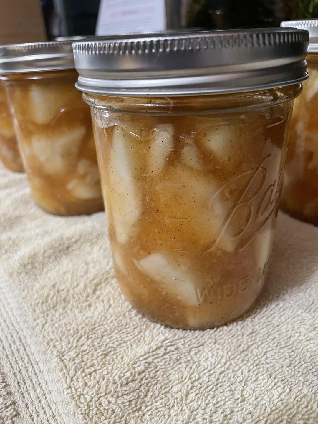 Canned my first ever batch of apple pie filling! Followed the ball recipe. Was pleased to see none of them overflowed during the water bathing process 😮💨