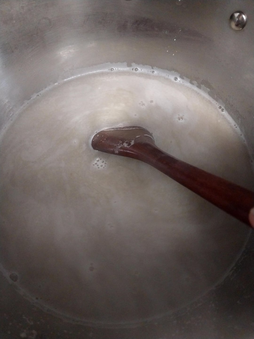 5.Put the fermented glutinous rice and malt water in a large pot, bring to a boil, until the water becomes half, then cool.