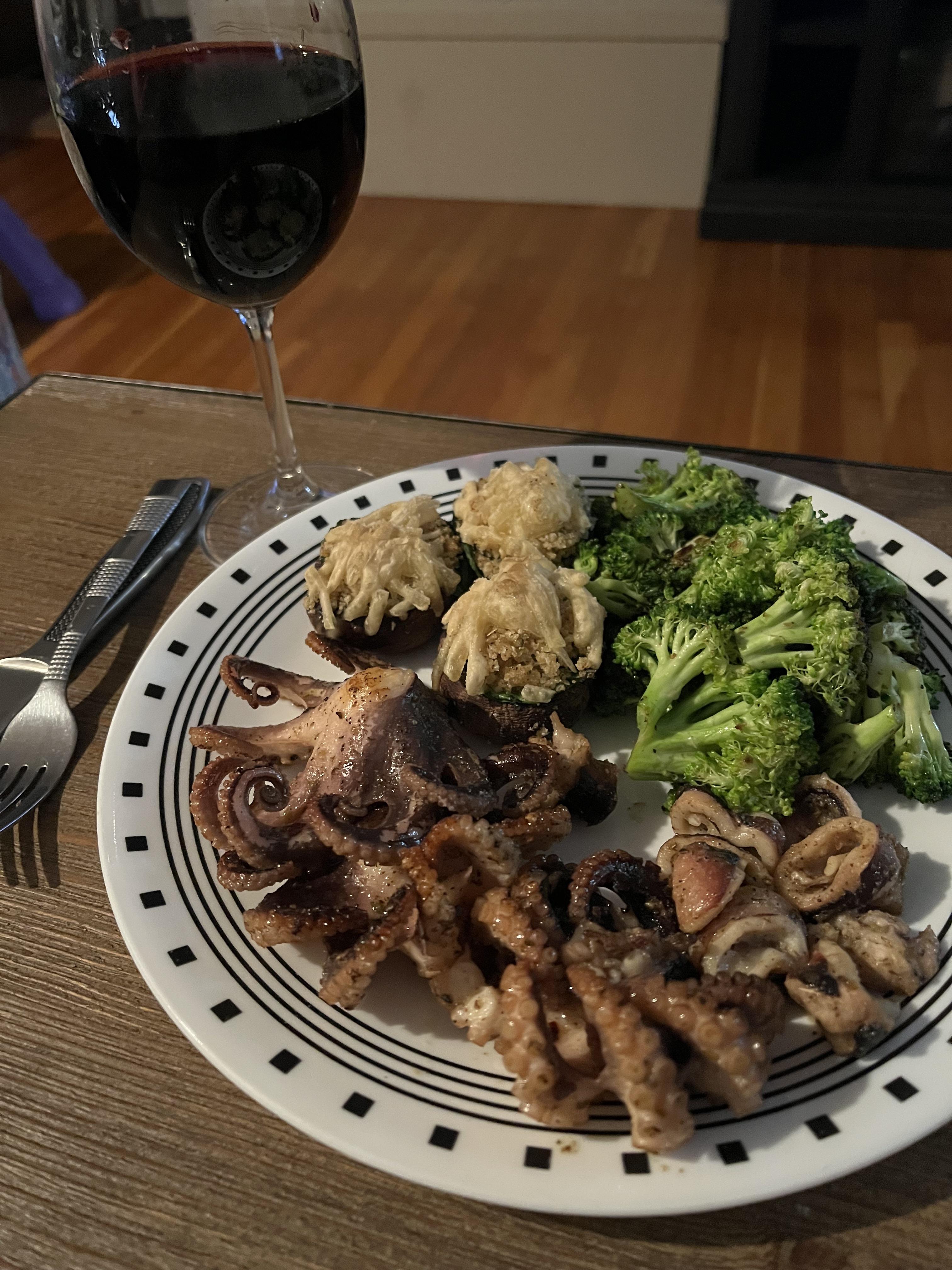 It was a pulpo with stuffed mushrooms and roasted broccoli kind of night. #dontforgetthewineby Nurs_Ria_0215 3 Comments kuchenrolle 2 years ago Did you mean to post this somewhere else? zazuspapa 2 years ago I gotta ask how you cooked the octopus… PhilU52 2 years ago Damn, that’s some small octopus! Looks like you kept the heads, it’s my favorite part!Write A CommentYou must be logged in to post a comment.