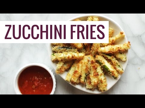 BAKED ZUCCHINI FRIES! Super easy, crispy, and healthy. Best dipped in marinara or cheese sauce!