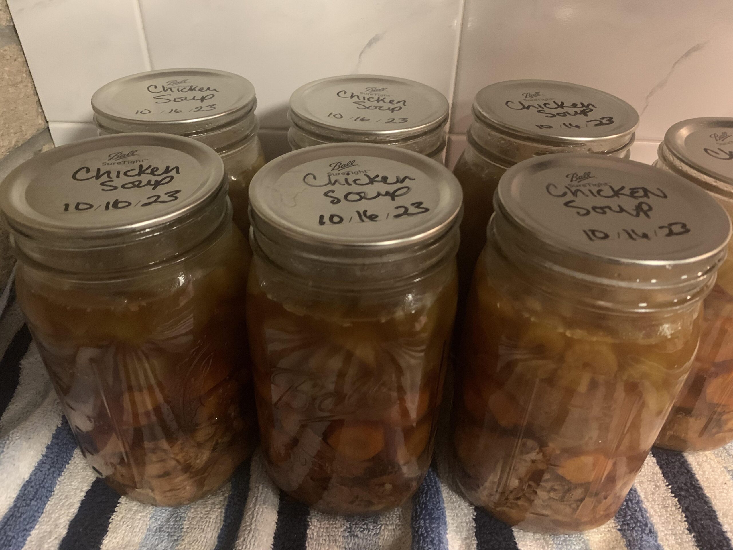 I was very lucky they all sealed because I had some siphoning (I need to watch my headspace better) but now we have some chicken soup for the shelves!