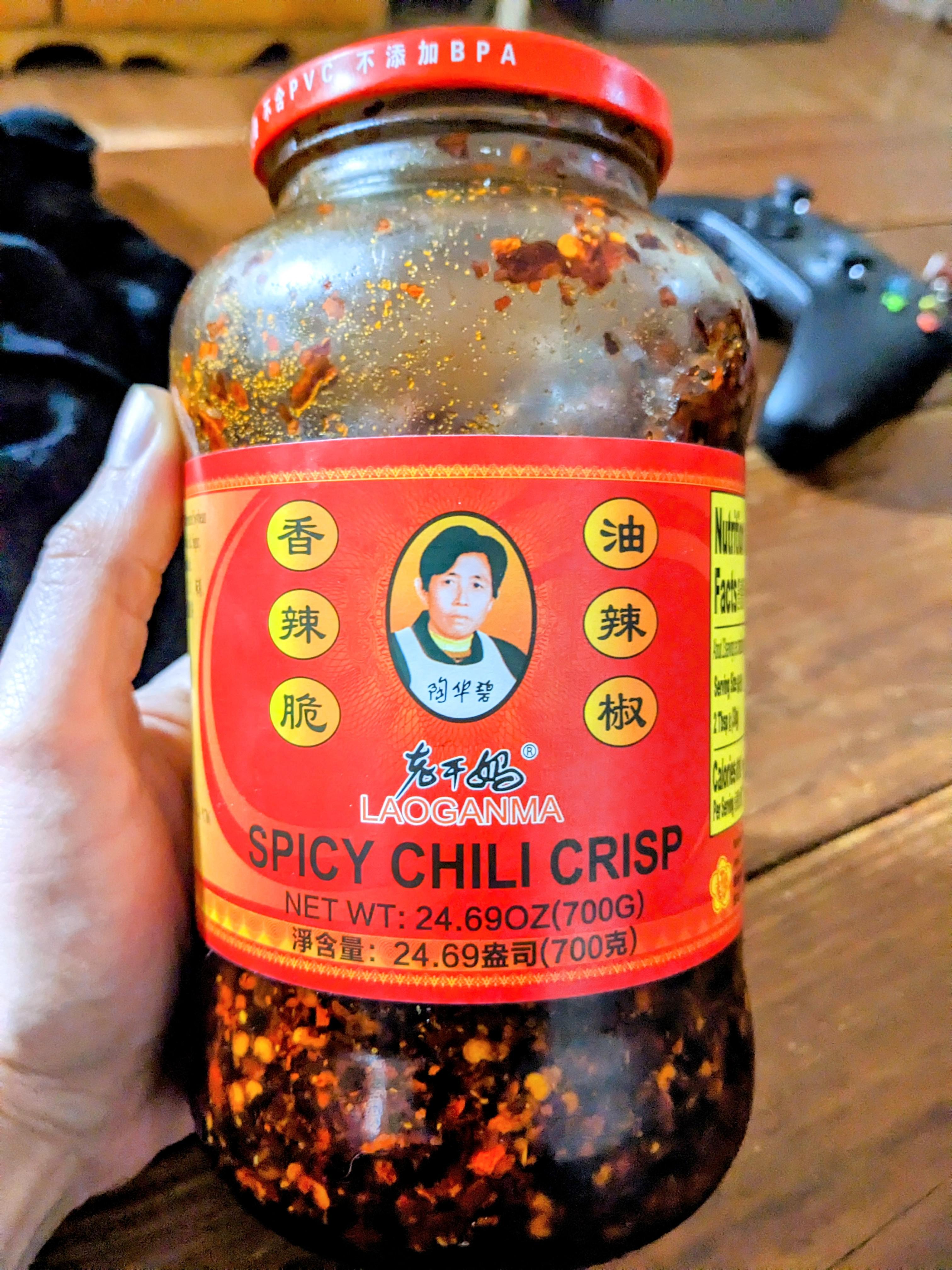 I discovered this stuff a few months ago and I have gone through like 12 jars of it. I have explored other options too, like Fly By Jing, Momofuku, Lee Kum Kee, and other Lao Gan Ma varieties, but none of them have the salty, oniony, peppery, crack-like flavor of this one. It is absolutely next level on pizza.