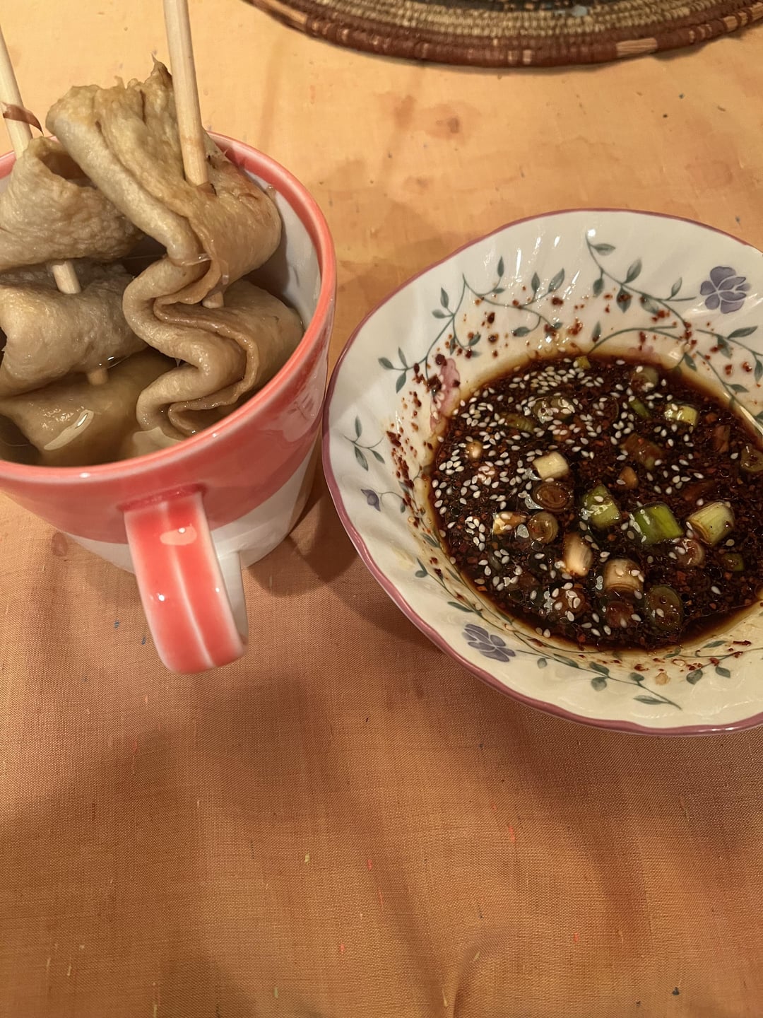 Made fish cake soup with the spicy dipping sauce