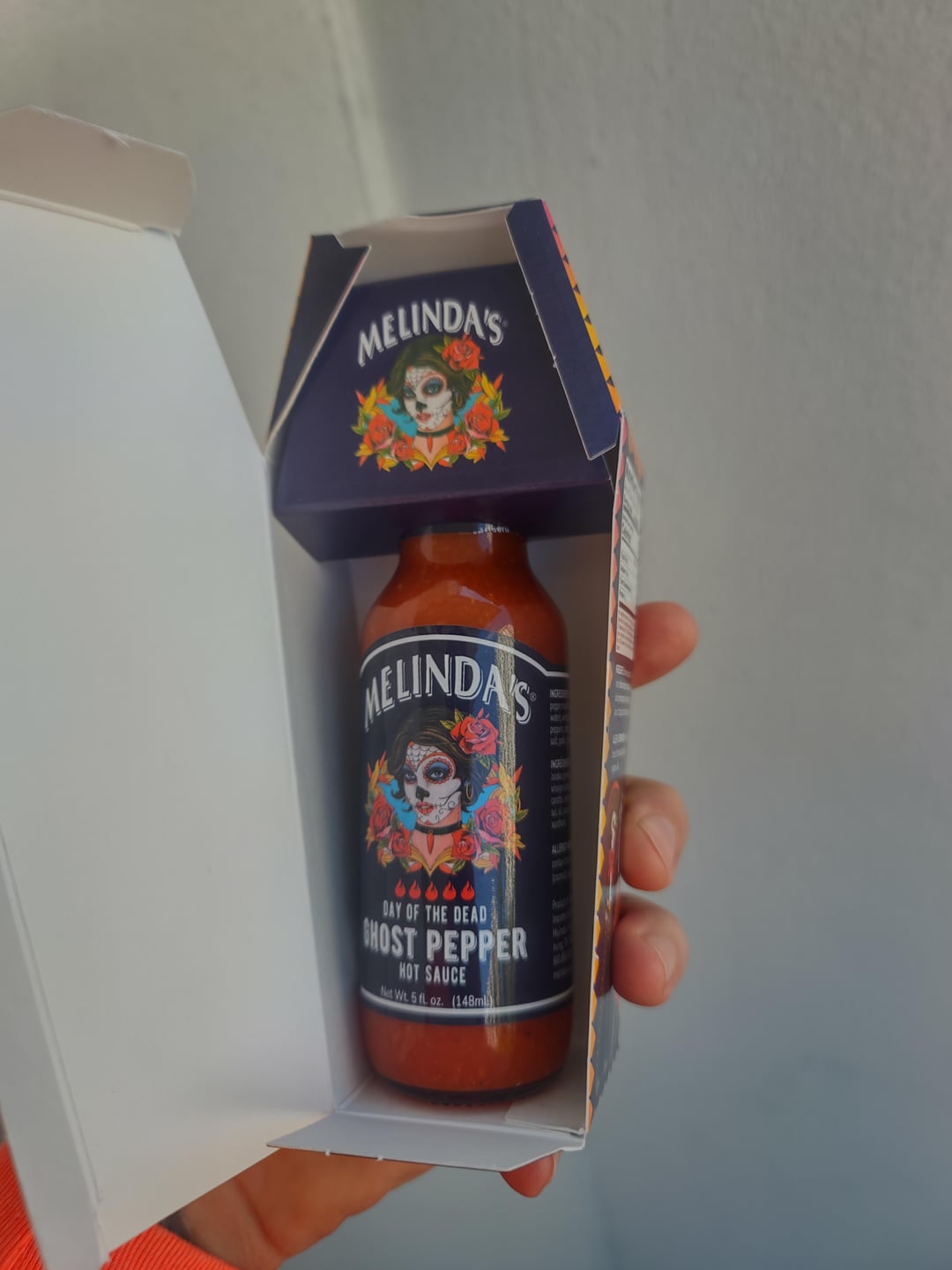 Picked up this limited edition by Melinda’s today. The consistency of the sauce is basically bhut jolokia and habanero mash with a dash of vinegar. I was a little intimidated, but the burn is actually manageable if not pleasant. Highly recommended.