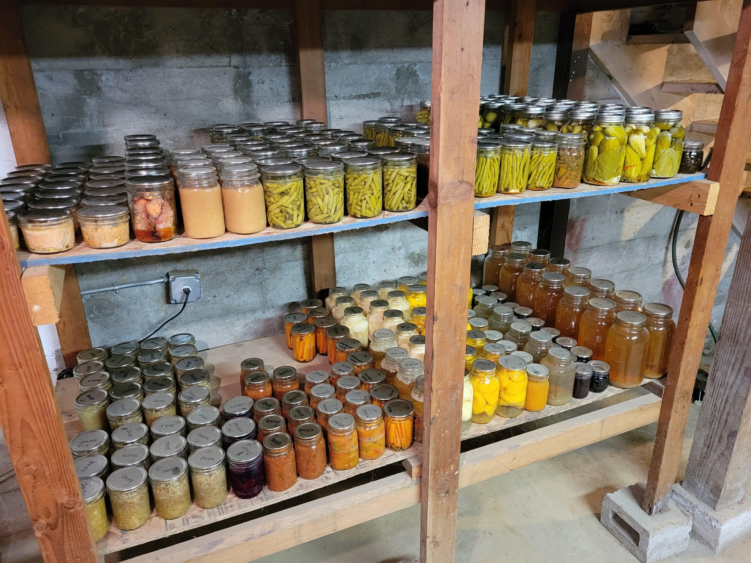 I think we’re finally done canning for the year. Everything here we grew on our place except the salmon, which I caught, and the beef broth from the 1/4 cow we got.