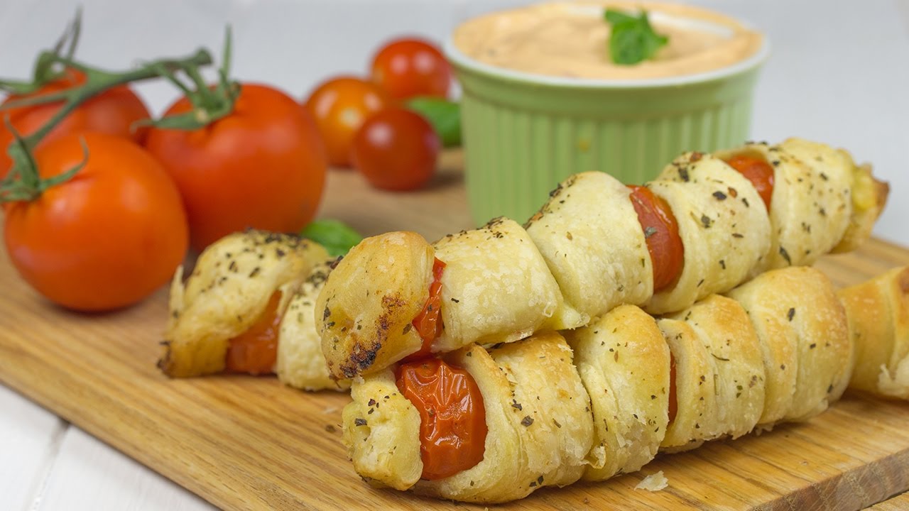 Ingredients: 300 g cherry tomatoes; 200 g mozzarella; 500 ml olive oil; 2 tsp Italian herbs; 1 tsp salt; puff pastry for wrapping. detailed recipe: https://wikr.com/baked-mozzarella-cherry-tomatoes-skewers/ Write A CommentYou must be logged in to post a comment.