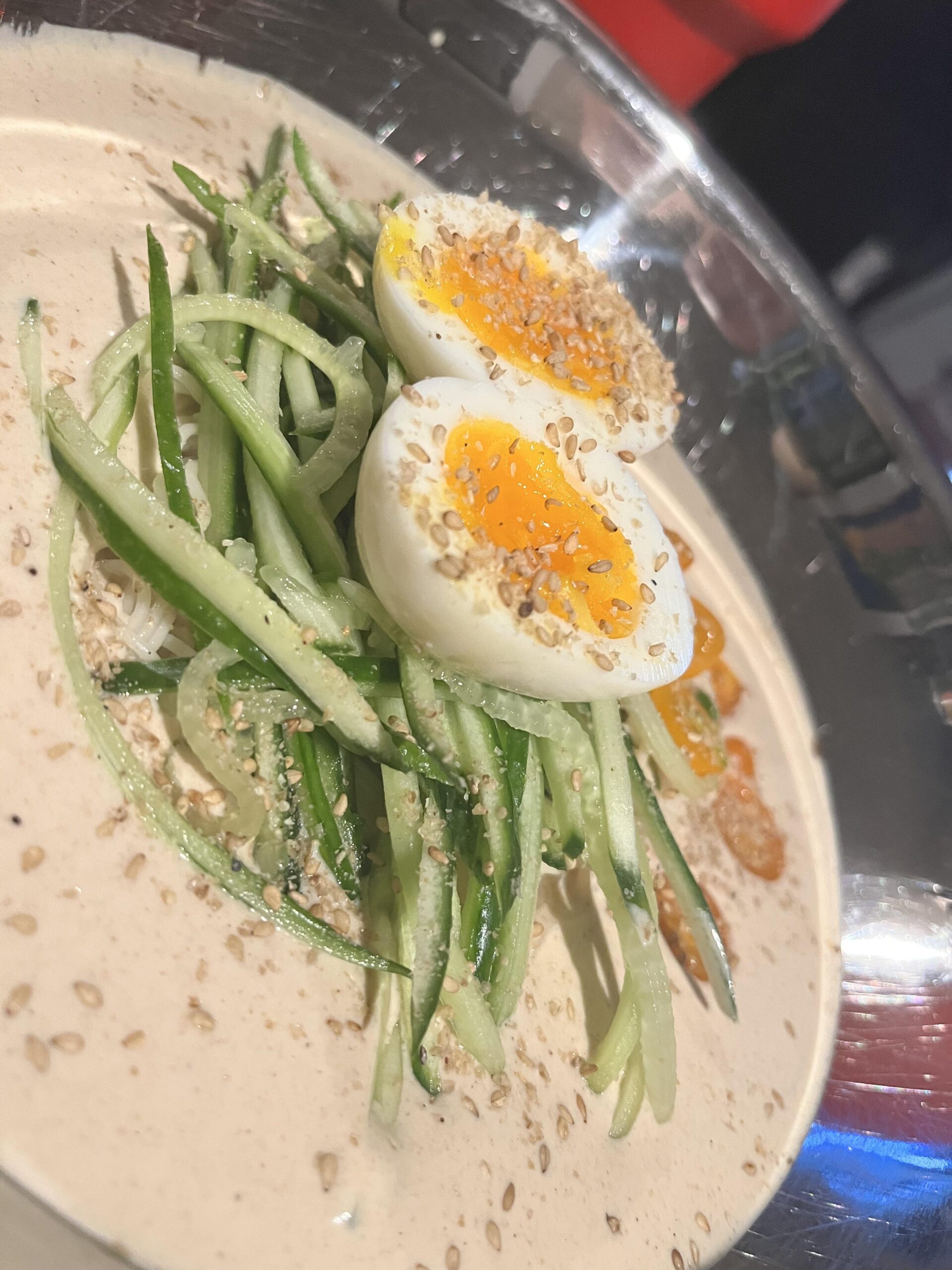 Cold noodles in a soybean soup. It’s subtly sweet with a pronounced nuttiness. Absolutely delicious. Homemade.by SheWlksMnyMiles Write A CommentYou must be logged in to post a comment.