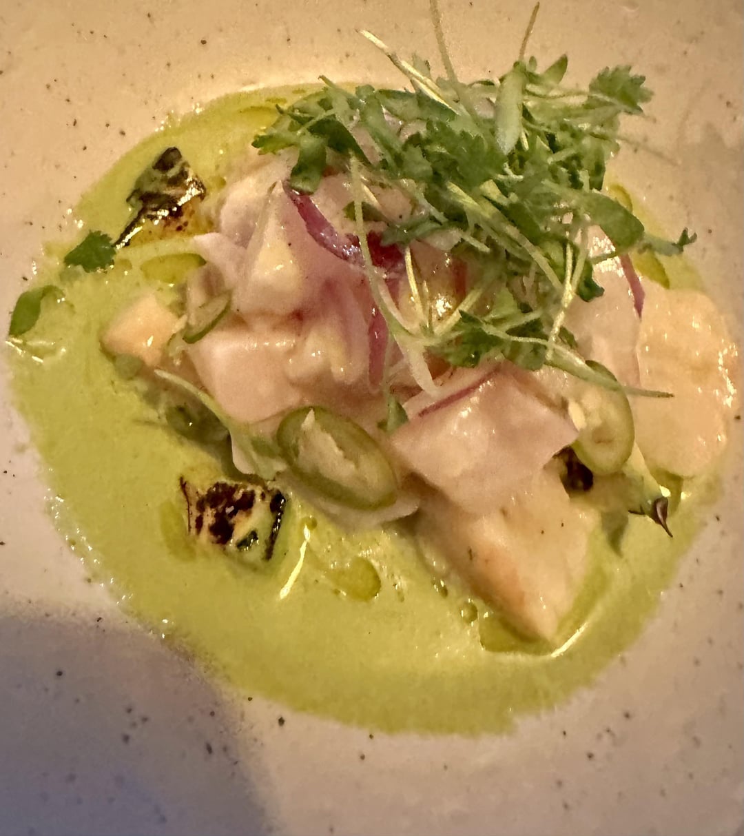 Had a delicious crispy Seabass dish, ceviche, sashimi, and Black Forest Cake.